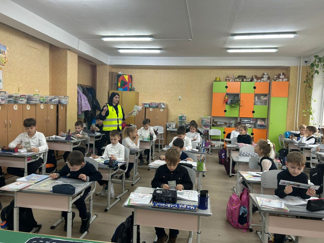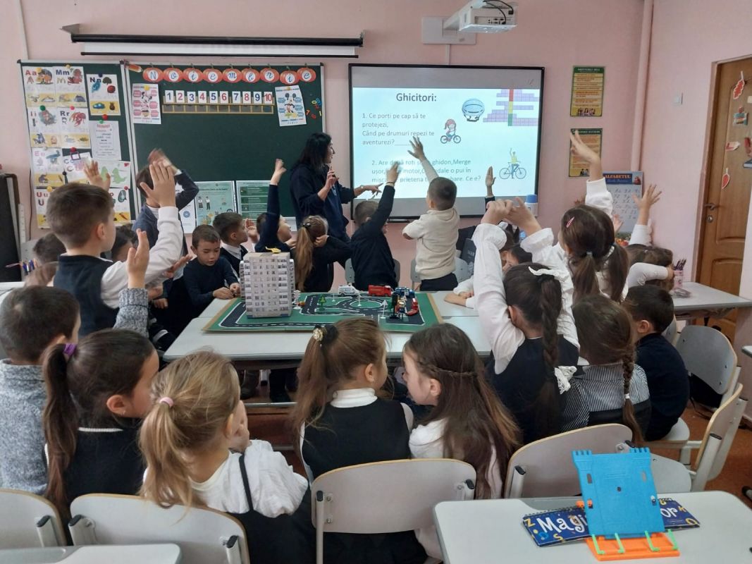 Exerciții practice au realizat și elevii claselor primare de la Liceul Teoretic „Mihail Sadoveanu” din orașul Hîncești, care au făcut cunoștință cu principalele indicatoare rutiere și au participat la activități interactive privind modul corect de traversare a străzii și comportamentul responsabil al pietonilor. Activitatea a avut rolul de a consolida cunoștințele teoretice și de a forma deprinderi practice sigure încă de la vârste fragede.